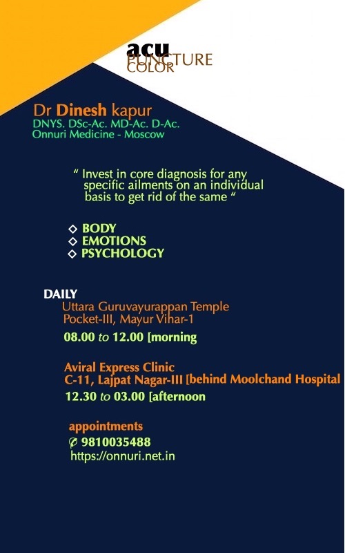 Medicine western looks at visible pathological phenomena. ONNURI looks at invisible fundamental life energies running all over the body along meridians process, so called ‘Ki’. In short, western medicine grasps human body as physical and employs analytical, artificial cure method. ONNURI views human body as a small cosmos energy system and employs general natural cure method.